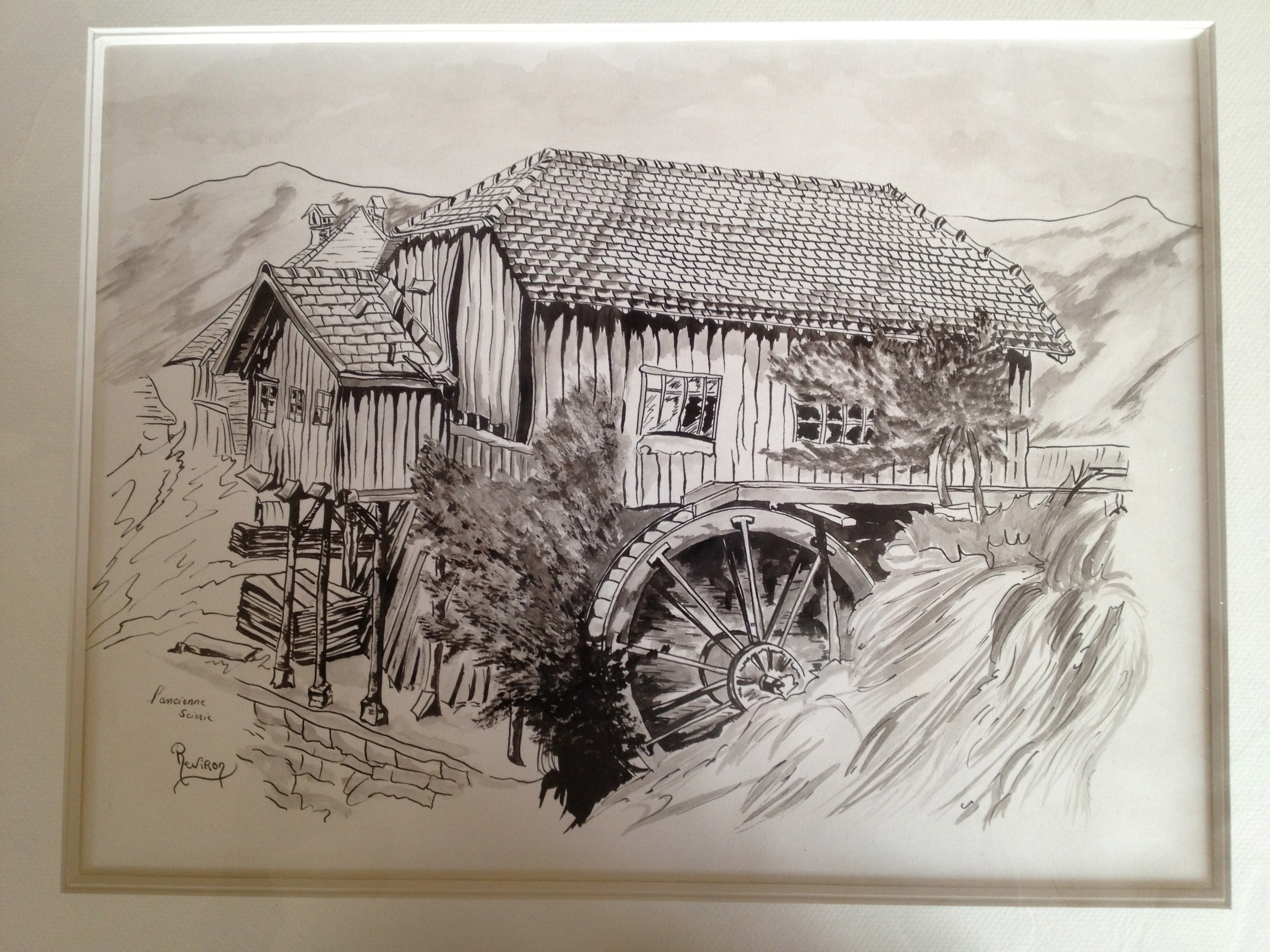 Inked image of the sawmill when it was still used to cut wood (pre renovation)